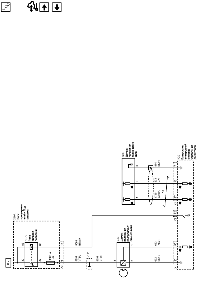 | b26 | Датчик положения коленчатого вала | kr75 | Реле силовой передачи |