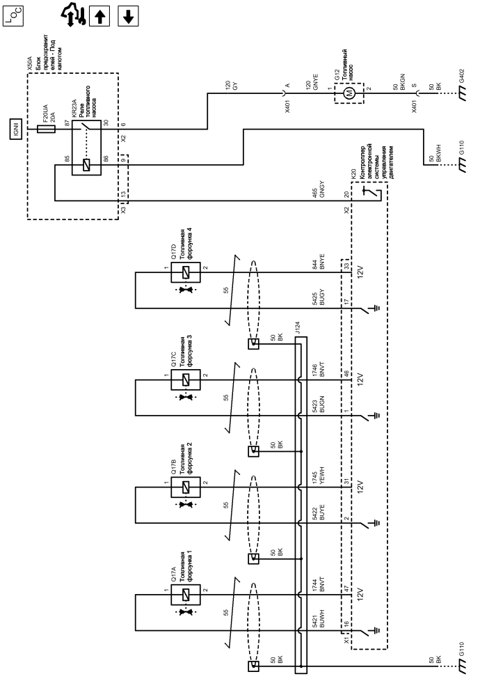 | f20ua | Предохранитель | q17b | Топливная форсунка 2 |