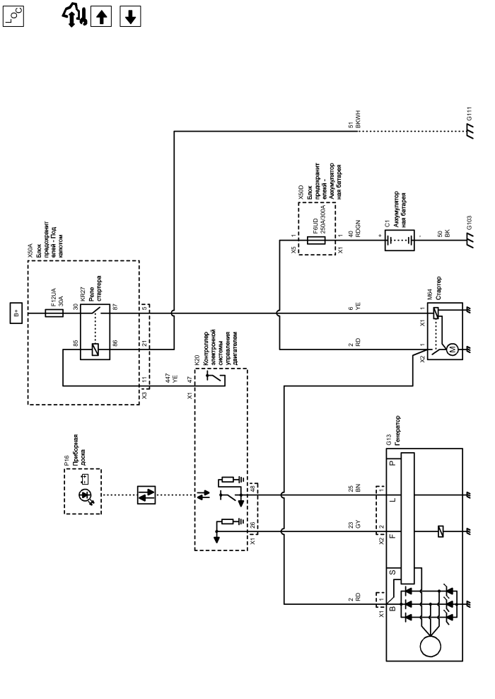 | g13 | Генератор | x50a | Блок предохранителей - Под капотом |