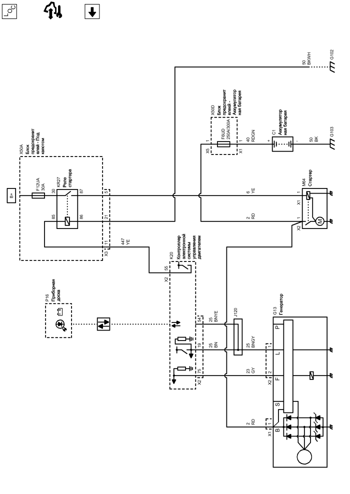 | g13 | Генератор | x50a | Блок предохранителей - Под капотом |