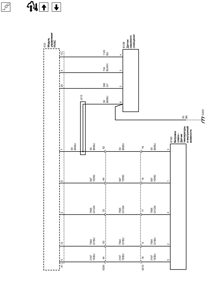 | k33 (x1) | Модуль управления hvac x1 | x210 | Жгут проводов кузова и жгут проводов крыши |