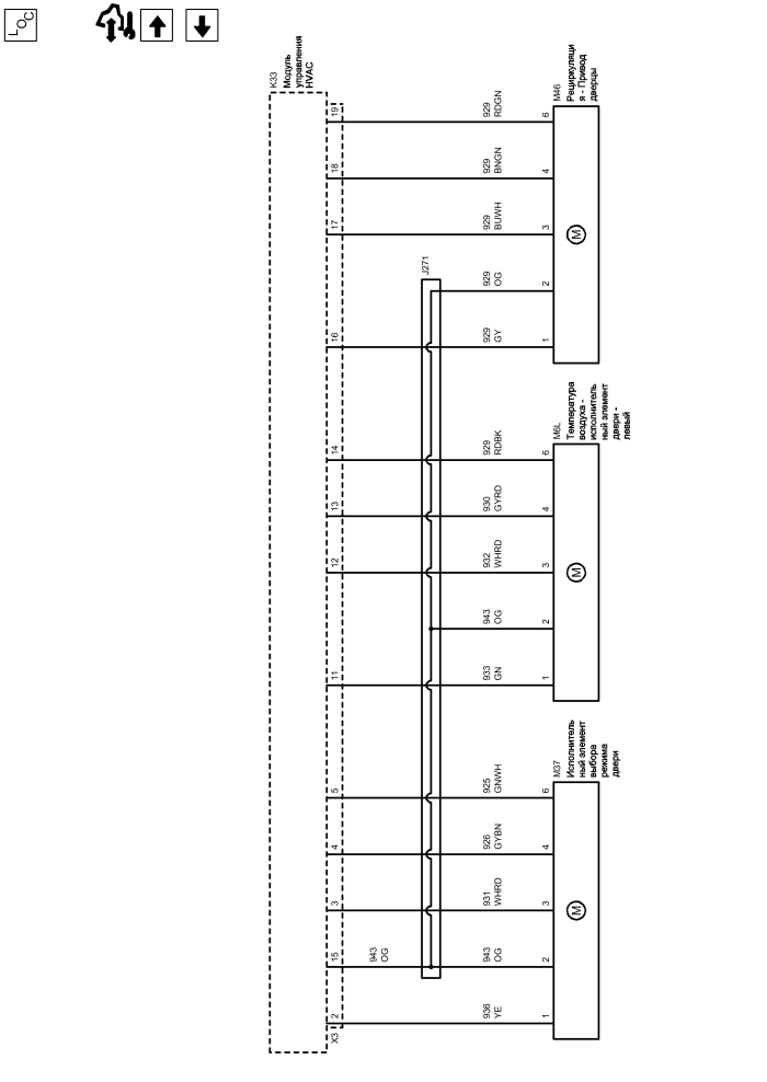 | j271 | Жгут проводов системы нагревания, вентиляции и кондиционирования (hvac) | k33 (x3) | Модуль управления hvac x3 |