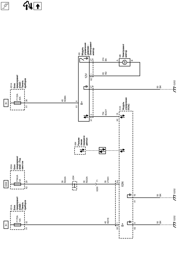 | k33 (x1) | Модуль управления hvac x1 | x200 | Жгут проводов кузова и жгут проводов панели приборов |
