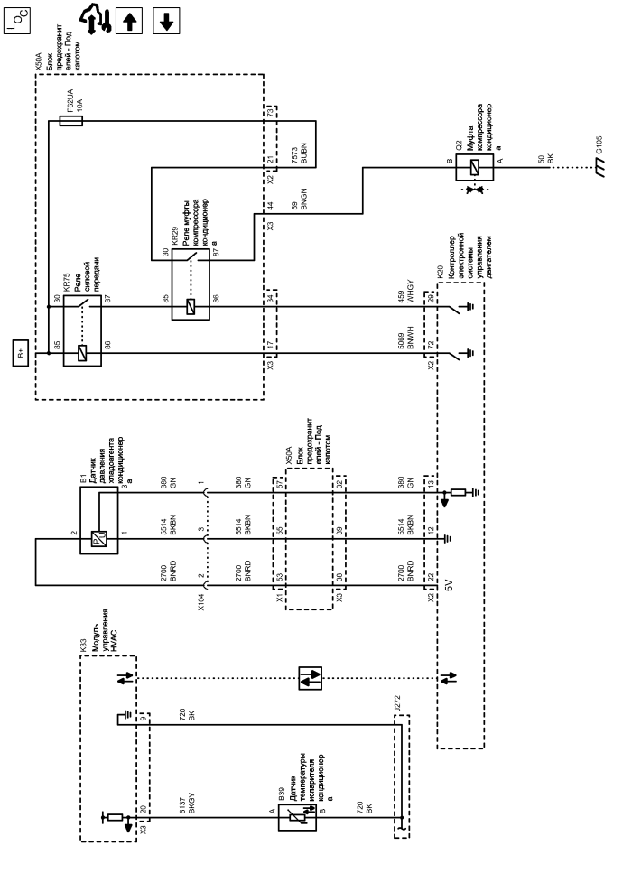 Электрическая схема Средства управления компрессором ДИЗЕЛЬНЫЙ ДВИГАТЕЛЬ, 4 ЦИЛ., L4, 2.0 Л, CRI, SOHC, ТУРБО, 110 кВт