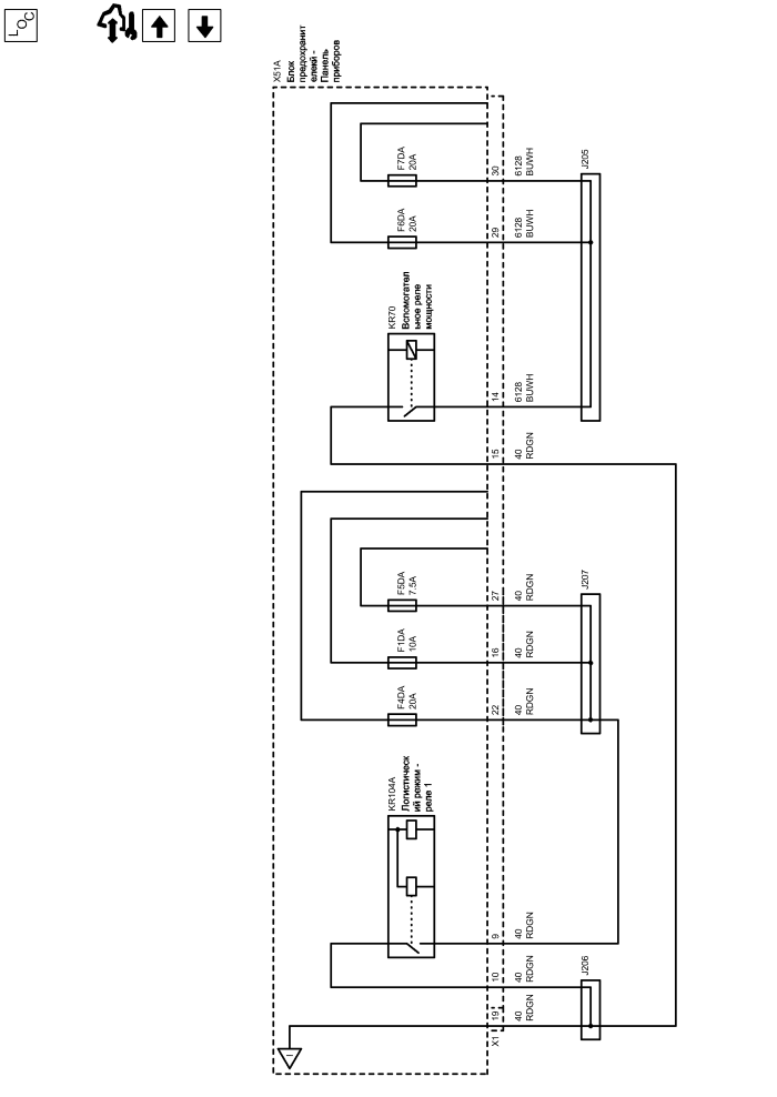 | j206 | Жгут проводов панели приборов | x51a (x1) | Блок предохранителекй - Панель приборов x1 |