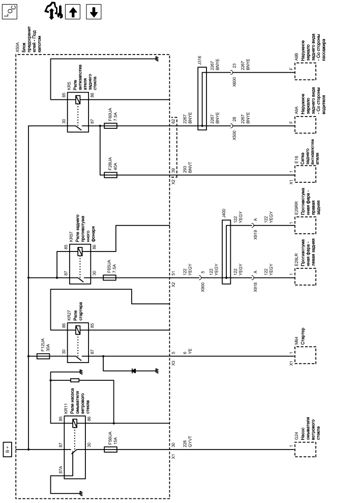 | e29rr | Противотуманная фара - правая задняя | kr27 | Реле стартера |