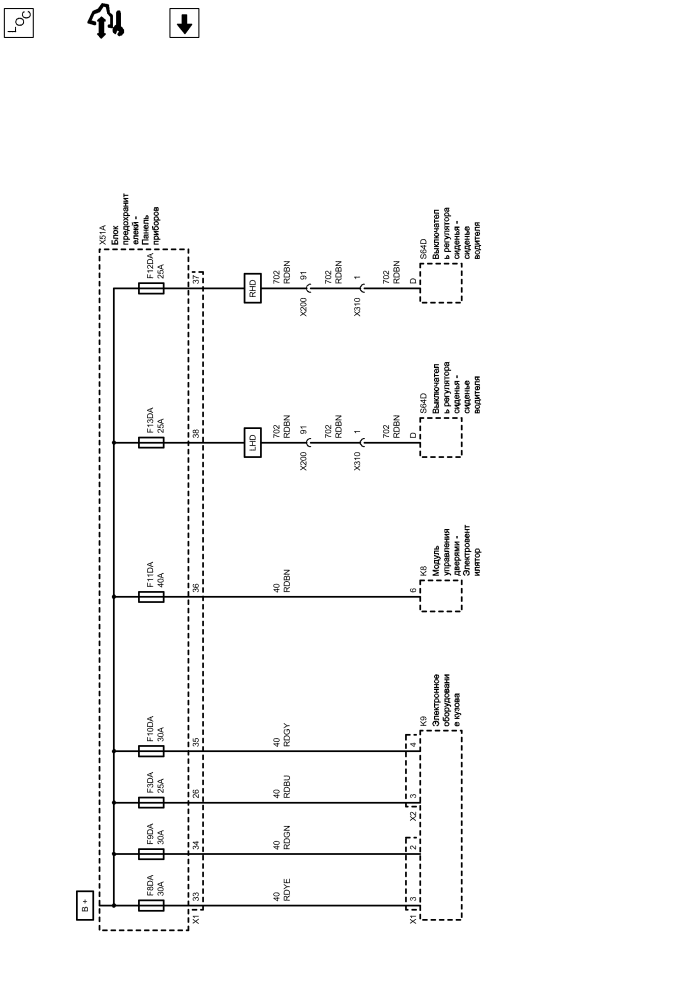 | f8da | Предохранитель | k8 | Модуль управления дверями - Электровентилятор |
