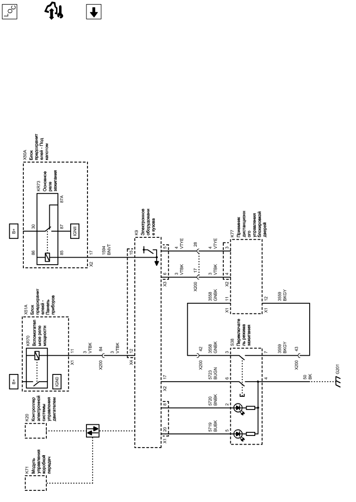 | k20 | Контроллер электронной системы управления двигателем | s38 | Переключатель режима зажигания |