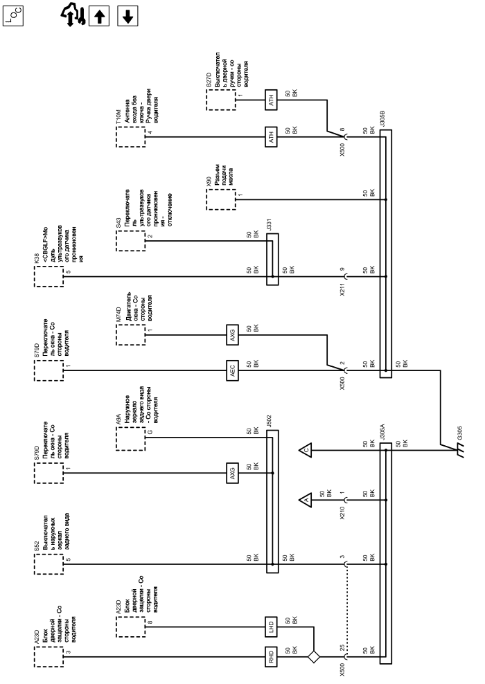 | a9a | Наружное зеркало заднего вида - Со стороны водителя | s43 | Переключатель ультразвукового датчика проникновения - отключение |