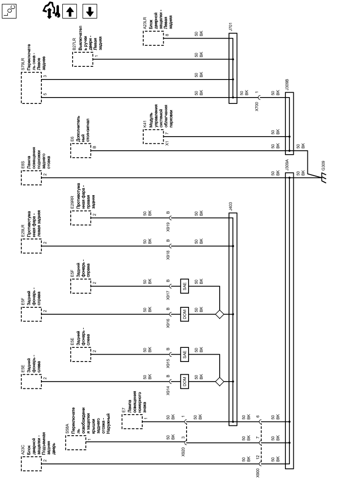 | j701 | Жгут проводов левой задней двери | x917 | Жгут проводов подъемной задней двери и жгут проводов правого заднего фонаря подъемной задней двери |