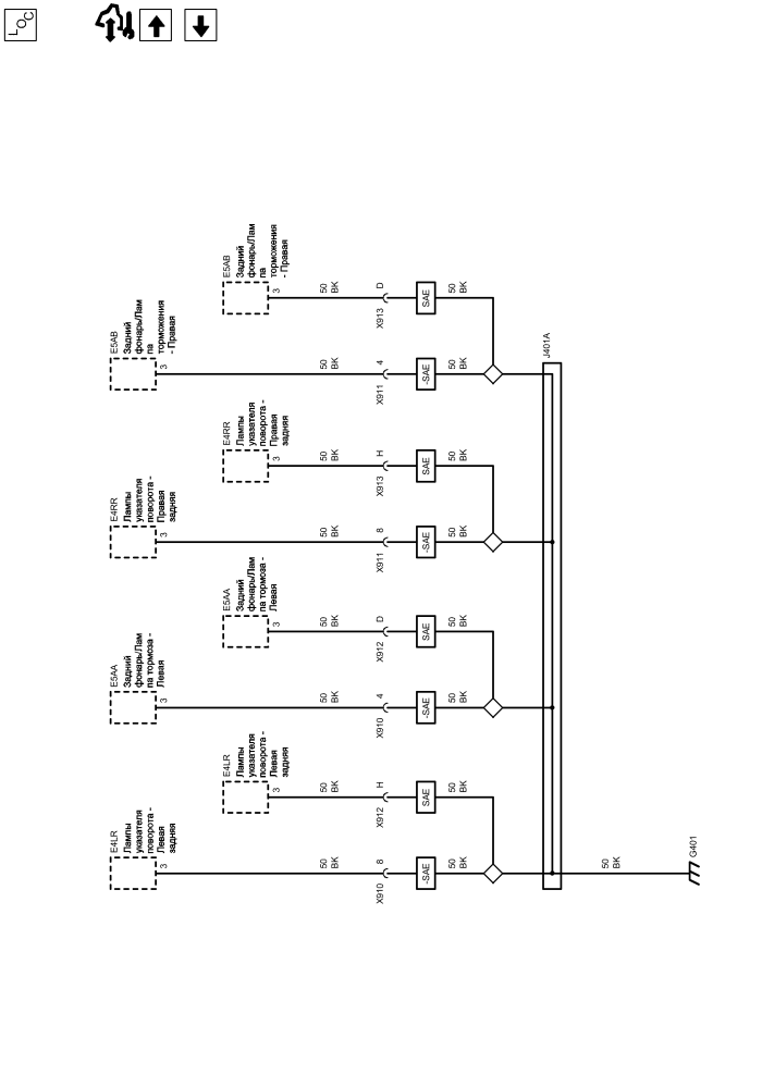| j401a | Соединение с виртуальной "землей" | x912 | Жгут проводов кузова и жгут проводов левого заднего фонаря/стоп-сигнала |