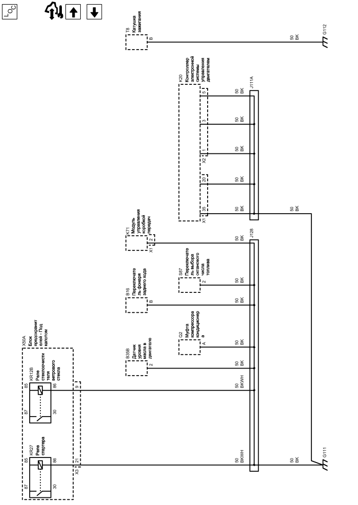 | j111a | Соединение с виртуальной "землей" | k20 (x2) | Контроллер электронной системы управления двигателем x2 |