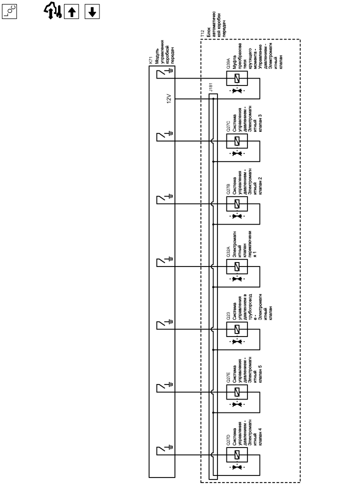 | q27c | Система управления давлением - Электромагнитный клапан 3 | t12 | Блок автоматической коробки передач |