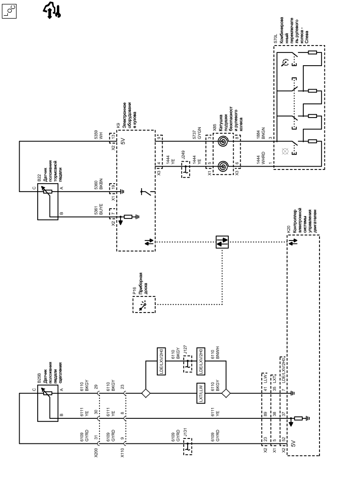 | b25b | Датчик положения педали сцепления | s70l | Комбинированный переключатель рулевого колеса - Слева |