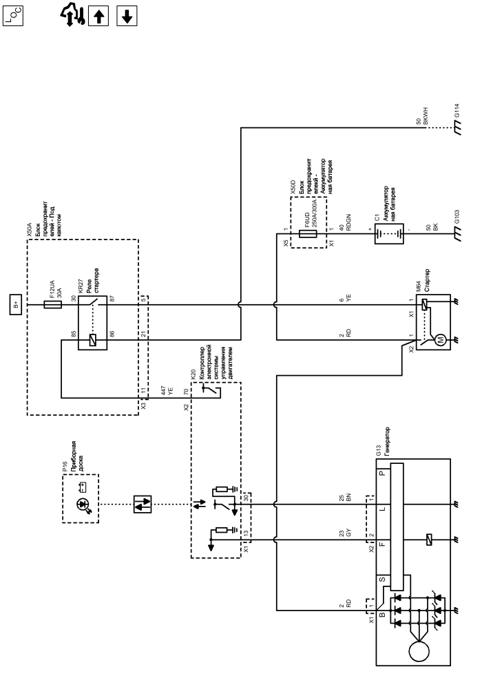 | g13 | Генератор | x50a | Блок предохранителей - Под капотом |