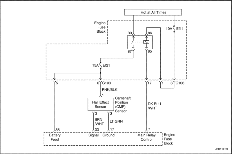 Датчик положения распределительного вала (СМР) используется для определения положения распределительного вала, а также для взаимосвязи с положением коленчатого вала, для того, чтобы контроллер ЭСУД мог определить, в какой цилиндр форсунке подавать топливо. Полярность сигнала датчика положения распределительного вала необходимо изменять только один раз согласно положению коленчатого вала.