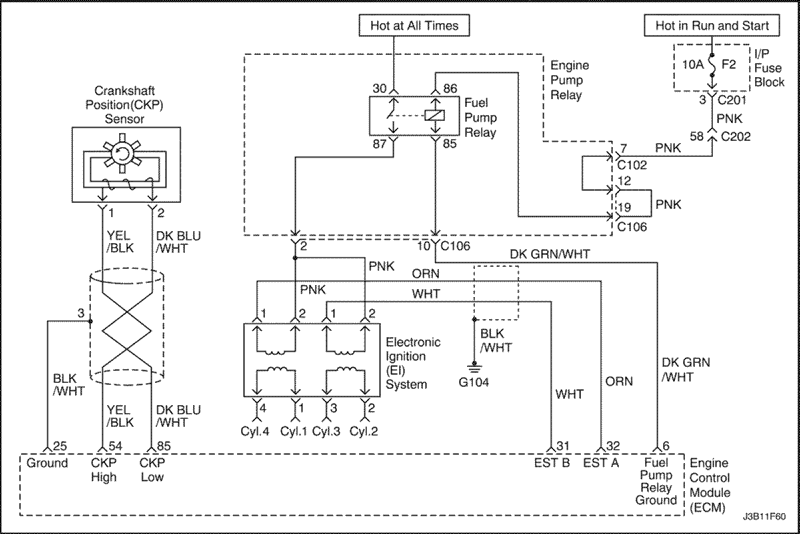 Контроллер электронной системы управления двигателем (ЭСУД) служит источником заземления для электронной цепи угла опережения зажигания. Когда контроллер ЭСУД размыкает "массу" первичной катушки зажигания, магнитное поле катушки исчезает. Исчезновение магнитного поля вызывает появление напряжения во вторичной катушке, которая выдает разряд на свече зажигания. Цепь между контроллером ЭСУД и электронной системой зажигания контролируется на отсутствие разрыва, короткого замыкания и низкого напряжения. Когда контроллер ЭСУД обнаруживает проблему в цепи установки угла опережения зажигания, он приводит к установке диагностического кода неисправности.