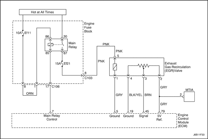 Проверить цепь управления клапана egr контрольной лампой, присоединенной к положительному выводу аккумулятора.