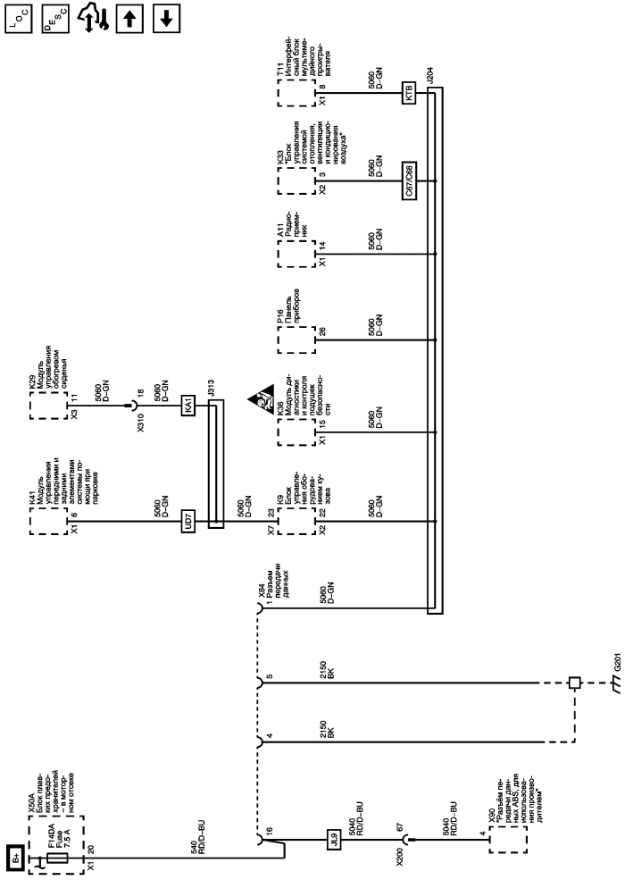 Предохранители F14DA, F15DA, F17DA, F21DA, F23DA, F24DA и F25DA