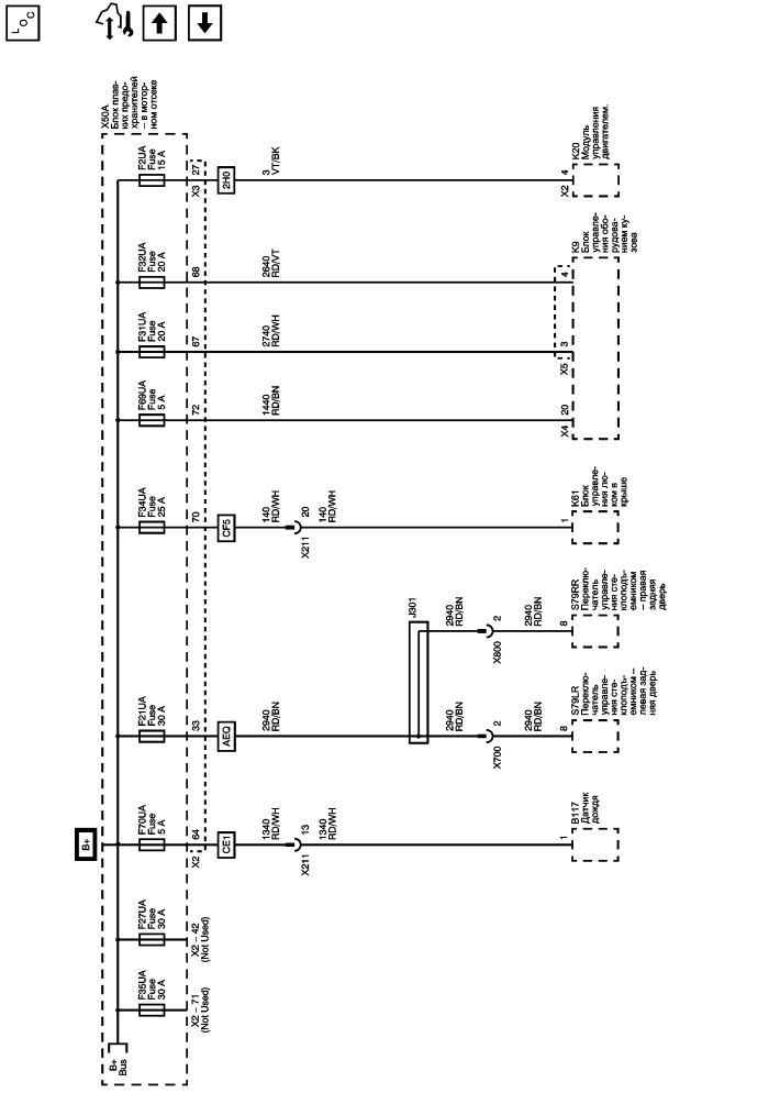 Предохранители F1UA, F25UA, F26UA, F30UA, F33UA, F55UA, F64UA и F67UA