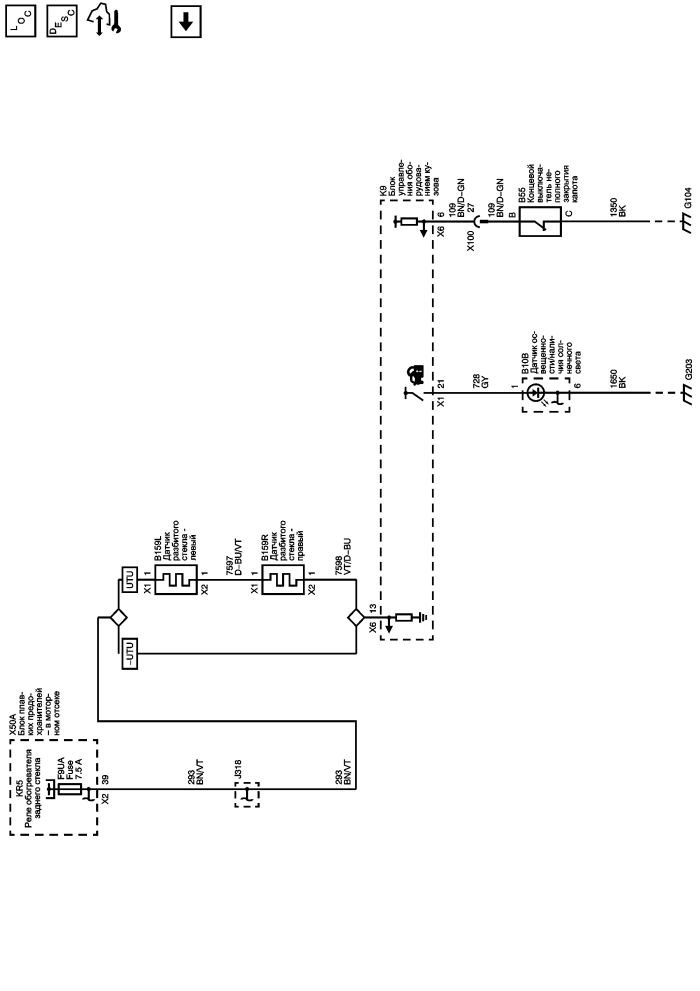 Датчик-выключатель незакрытого капота, датчик наружного освещения и датчик разбитого заднего стекла