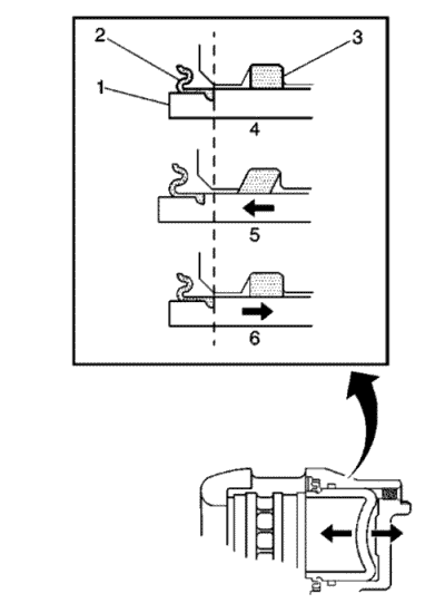 | 5. | Если движение поршня суппорта (1) не было полным и равномерным при приведении в действие и отпускании тормоза, квадратное уплотнение поршня (3) может быть изношено или повреждено и может требоваться капитальный ремонт или замена суппорта. |