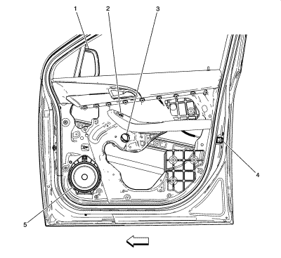 | (5) | P19AH Динамик - в правой передней двери |
