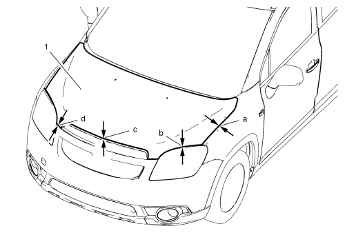 Отрегулируйте положение капота, чтобы обеспечить равномерные зазоры по обеим сторонам между капотом и крыльями, фарами и пояском переднего бампера, так чтобы капот точно подходил к обоим крыльям по переднему краю, к пояску переднего бампера и к фарам.