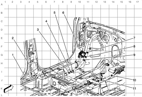 Прокладка жгутов проводов кузова- В пассажирском салоне слева спереди (левостороннее управление)