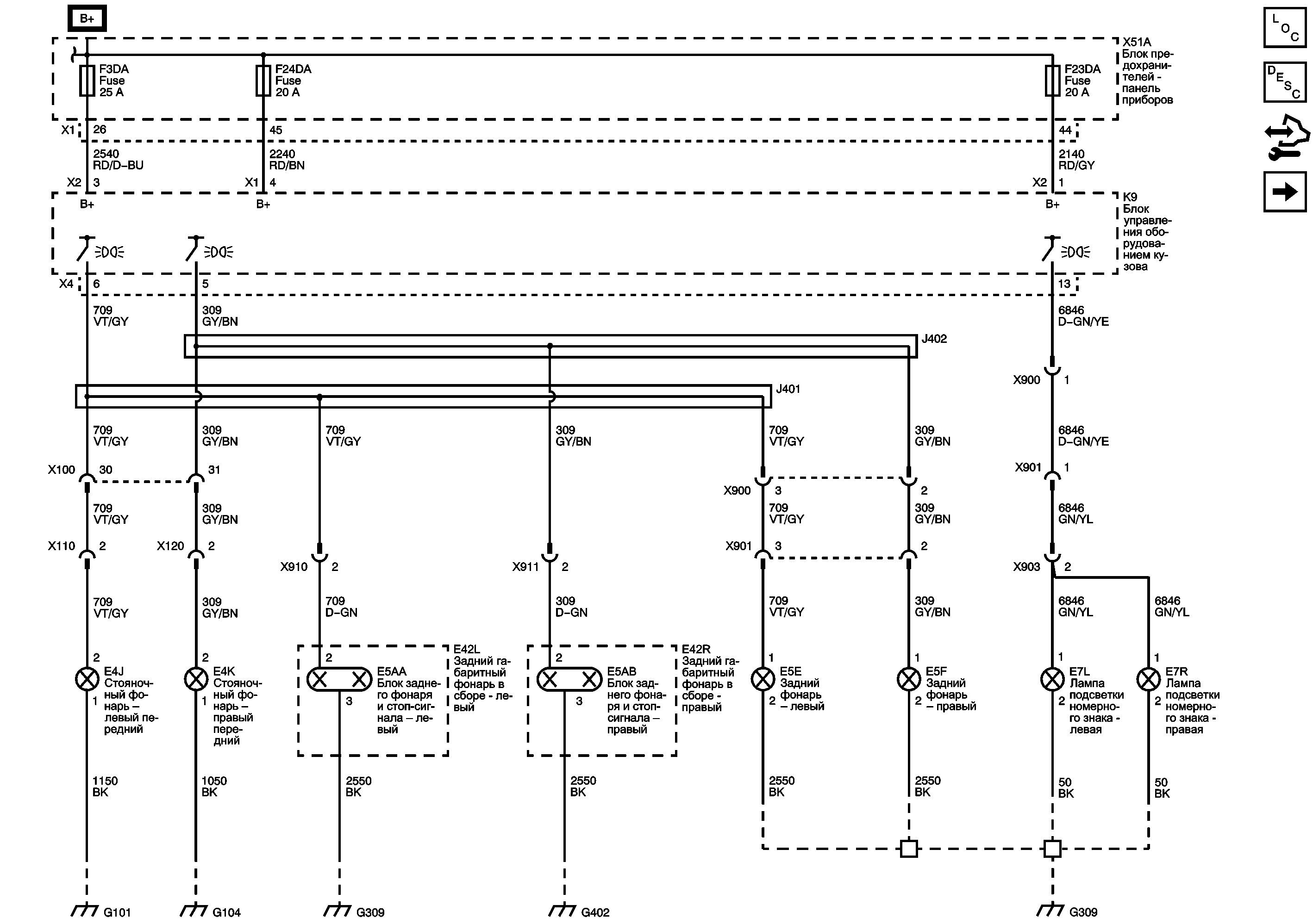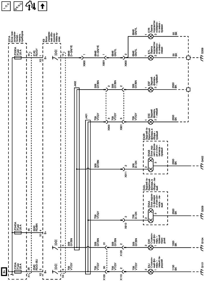 Предохранители F14DA, F15DA, F17DA, F21DA, F23DA, F24DA и F25DA