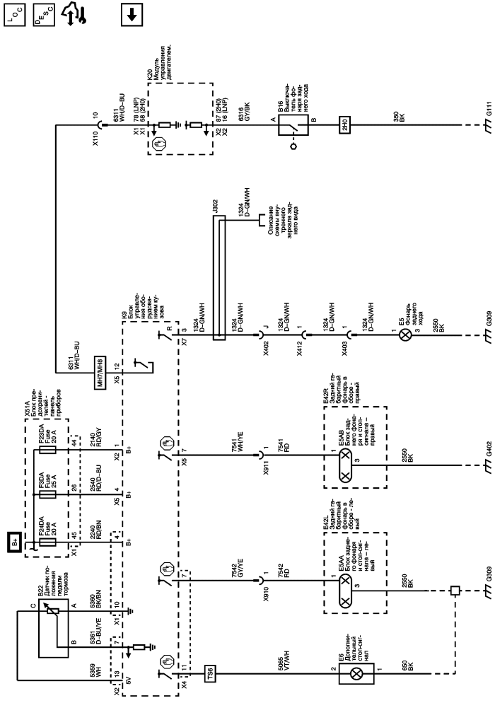 Предохранители F14DA, F15DA, F17DA, F21DA, F23DA, F24DA и F25DA