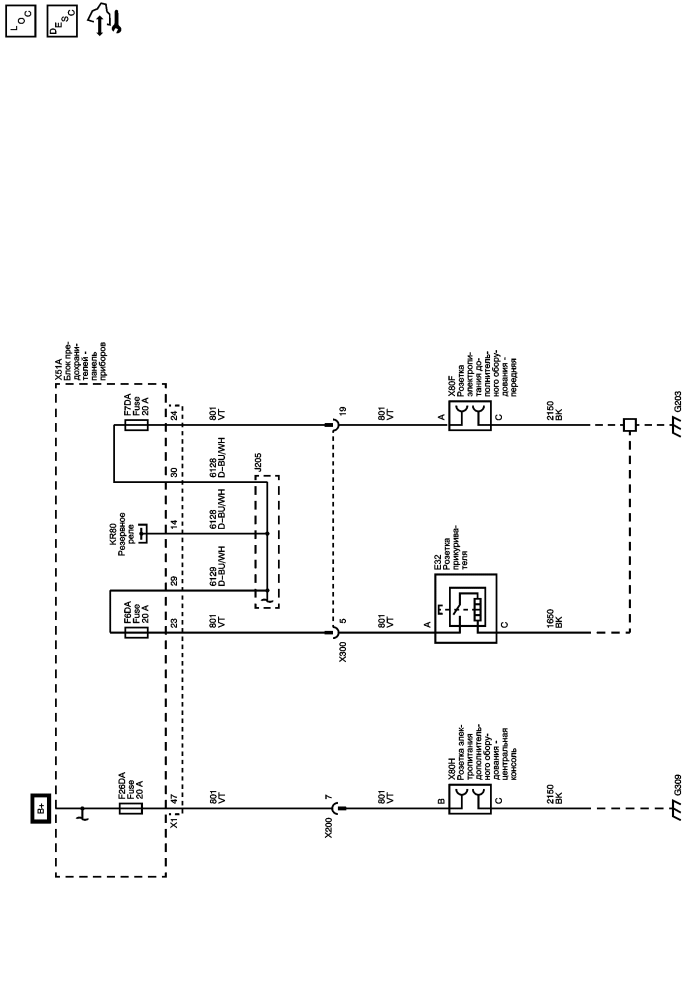 Предохранители F14DA, F15DA, F17DA, F21DA, F23DA, F24DA и F25DA