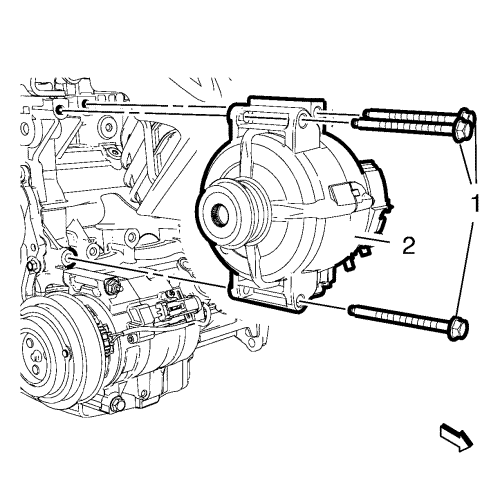 | 12. | Отвернуть 3 болта (1) генератора. |