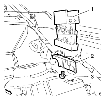 | Отвернуть болт (3) и снять переходник en-47650-300 (1) с балки переднего отсека (2). |