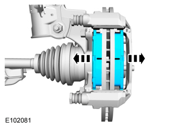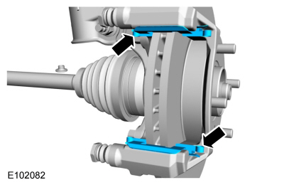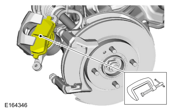 NOTICE: Protect the caliper pistons and boots when pushing the caliper piston into the caliper piston bores.