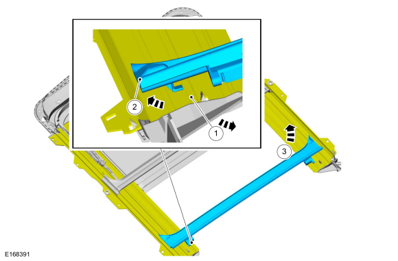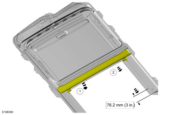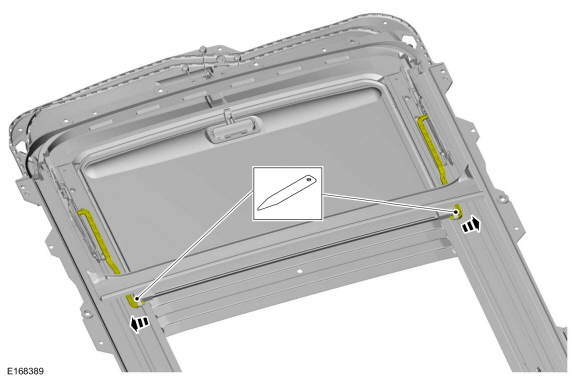 NOTICE: Use care when disconnecting the trough assembly from the roof opening panel tracks to prevent damage to the trough assembly or frame.