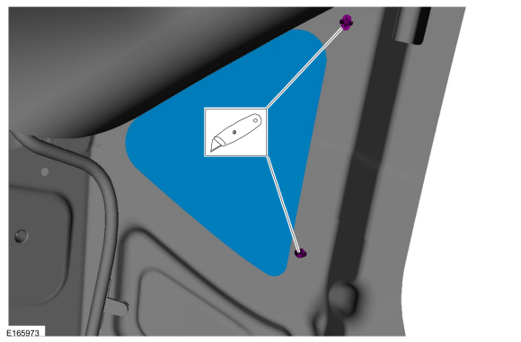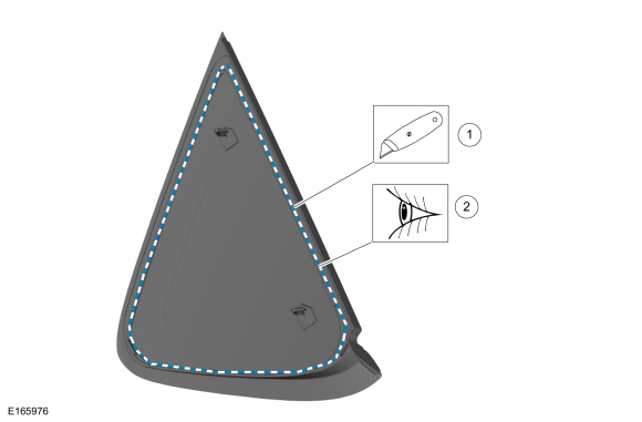 NOTE: Locating pins need to be cut through in order to remove the rear quarter window glass. The new rear quarter window glass will be equipped with new locating pins.