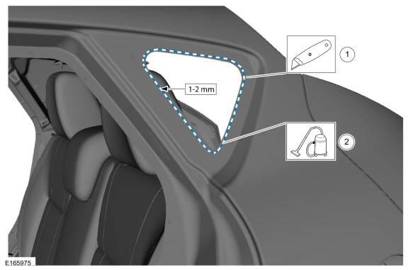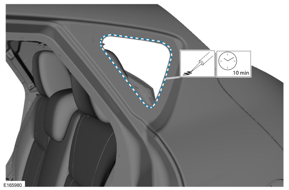 If installing a new rear quarter window glass, apply glass primer according to manufacturer's instructions. Allow at least 6 minutes to dry.NOTE: Position the rear quarter window glass within 10 minutes of applying the urethane adhesive.