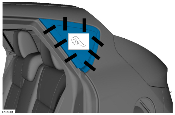 Use tape to secure the rear quarter window glass in the correct position until the adhesive has cured.