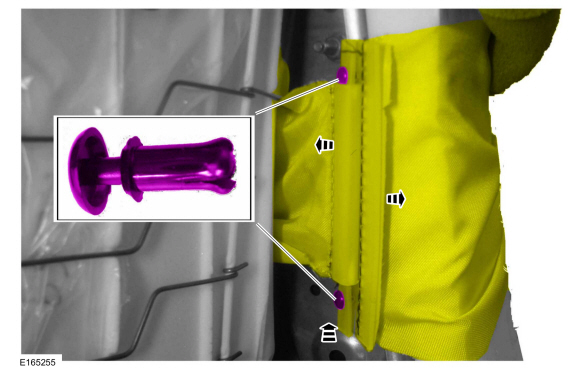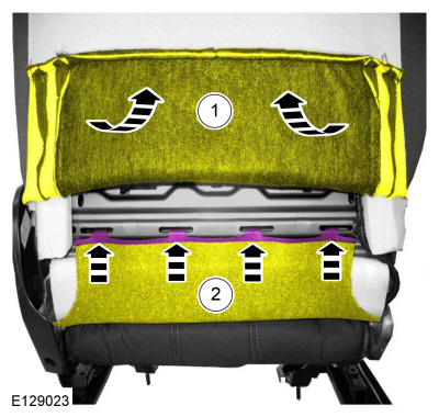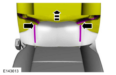 NOTICE: The head restraint guide sleeves are not interchangeable. Failure to install the correct head restraint guide sleeves at the correct position may result in component failure.