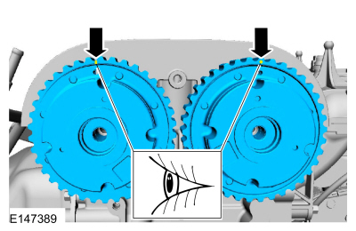 NOTE: It may be necessary to use an open-ended wrench to turn the camshafts by the hexagon to align the camshafts.