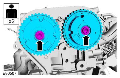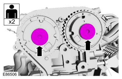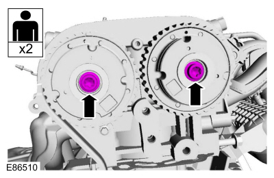 Install Special Service Tool : 303-376B Alignment Plate, CamshaftNOTE: Use an open-ended wrench to hold the camshafts by the hexagon to prevent the camshafts from turning.
